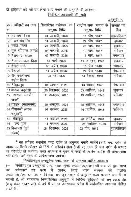 यह कैलेंडर प्रदेश के सरकारी कार्यालयों, कर्मचारियों और आमजन के लिए वर्ष 2026 की कार्ययोजना तय करने में उपयोगी रहेगा।