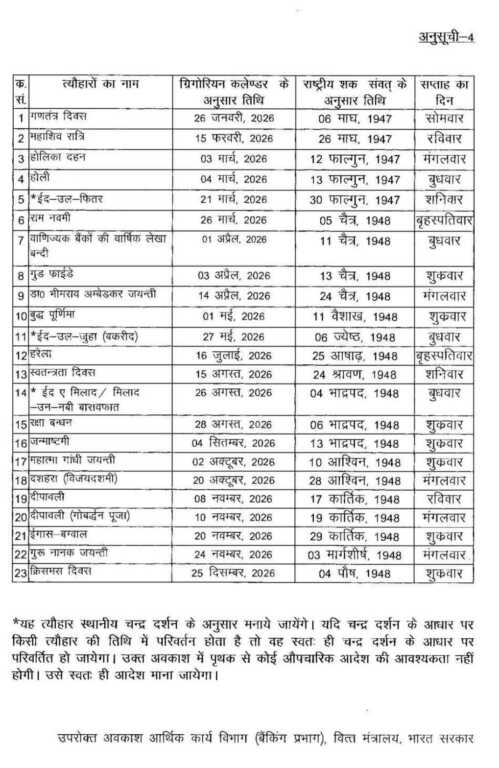 वहीं अनुसूची-4 में कुल 23 अवकाश शामिल किए गए हैं।