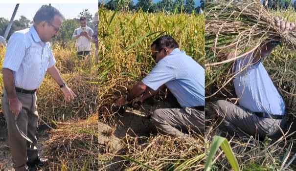 जिलाधिकारी ने धान की क्रॉप कटिंग में किया प्रतिभाग