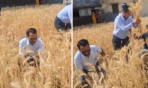डीएम खुद खेत में पहुंचे और हंसिया लेकर फसल कटाई प्रक्रिया का निरीक्षण किया, जिससे प्रशासन की सक्रियता और किसानों के प्रति संवेदनशीलता साफ नजर आई।