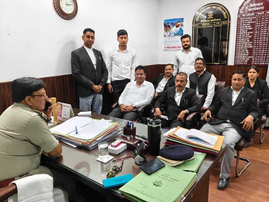 Haldwani – न्यायालय परिसर में गुरुवार को एक वारंटी द्वारा अधिवक्ता के साथ मारपीट की घटना के बाद अधिवक्ताओं में रोष और भय का माहौल बन गया। मामले को लेकर हल्द्वानी बार एसोसिएशन का एक प्रतिनिधिमंडल अध्यक्ष गोविंद सिंह बिष्ट के नेतृत्व में एसपी सिटी मनोज कत्याल से मिला और न्यायालय परिसर की सुरक्षा व्यवस्था सुदृढ़ करने की मांग की।