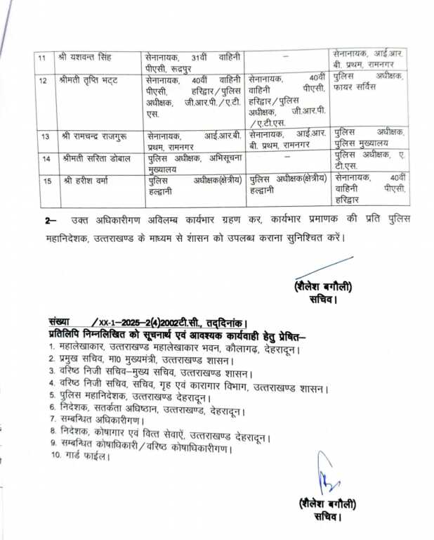 नई तैनाती मिलने के बाद सभी अधिकारियों को जल्द से जल्द अपना कार्यभार संभालने के निर्देश दिए गए हैं।